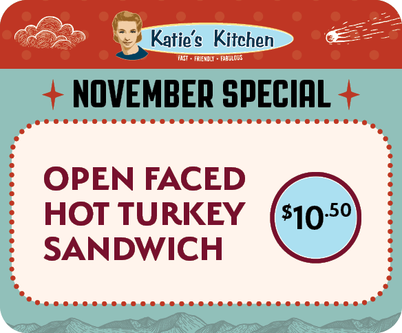 November Special: Open Faced Hot Turkey Sandwich, $10.50